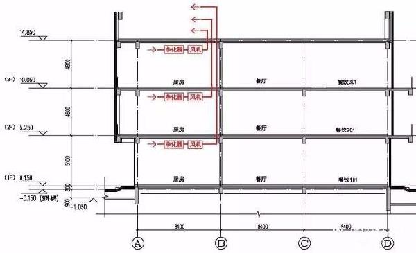 機房、風機及風管的布置廚房的排風機宜設在廚房的上部,廚房為公共建筑中的一部分時,其排風機宜設在屋頂層,這可以使風道內處于負壓狀態,避免氣味外溢。